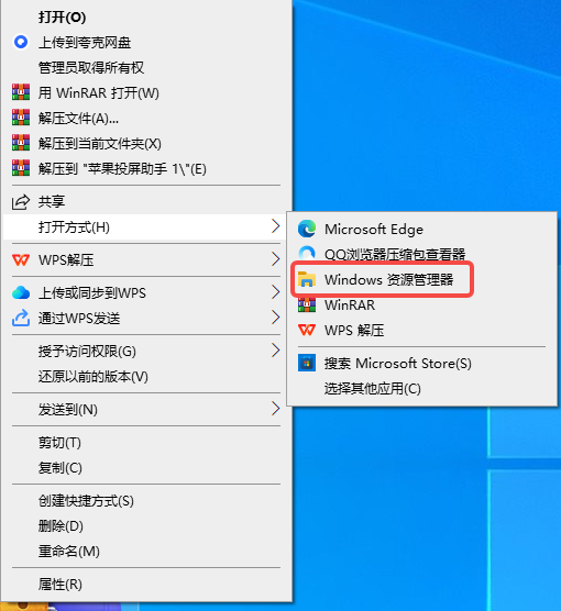 - 下载后的文件为zip文件,可以鼠标右击该文件,打开方式选择资源管理器。
