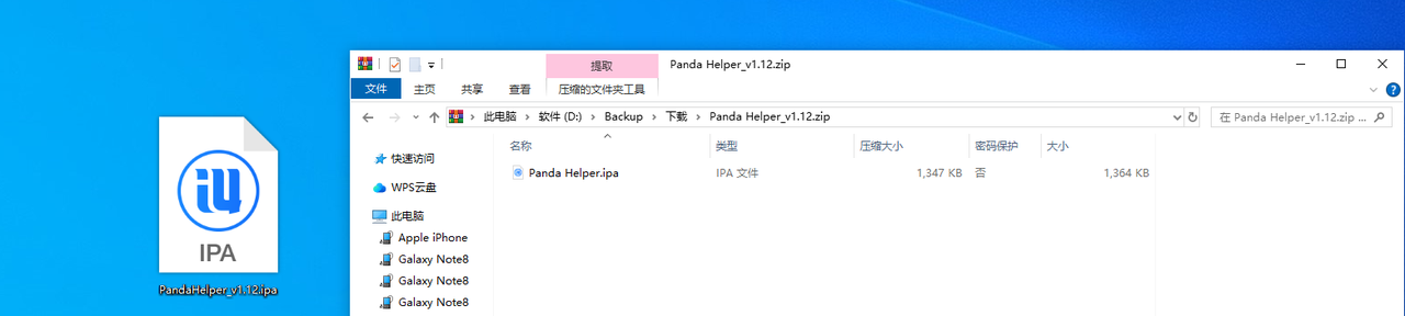 - 可以用鼠标将PandaHelper.ipa拖到电脑桌面,至此已完成下载工作。