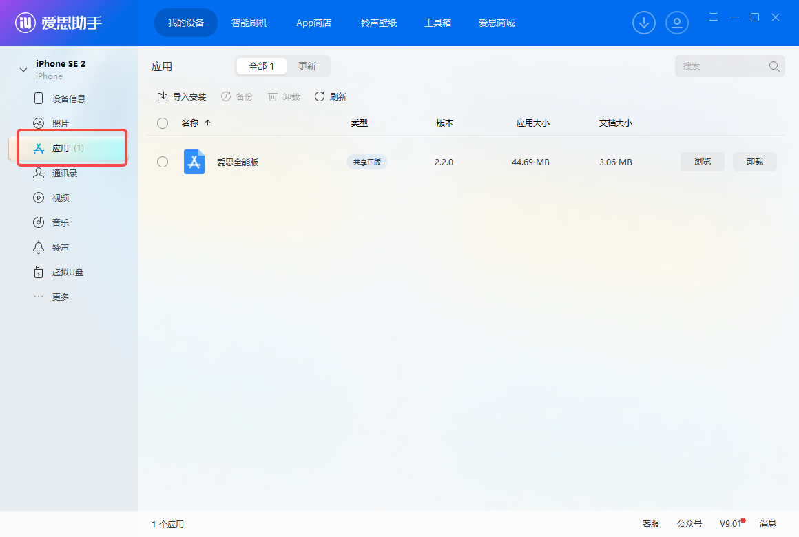 - 点击爱思助手所连接设备中的应用。