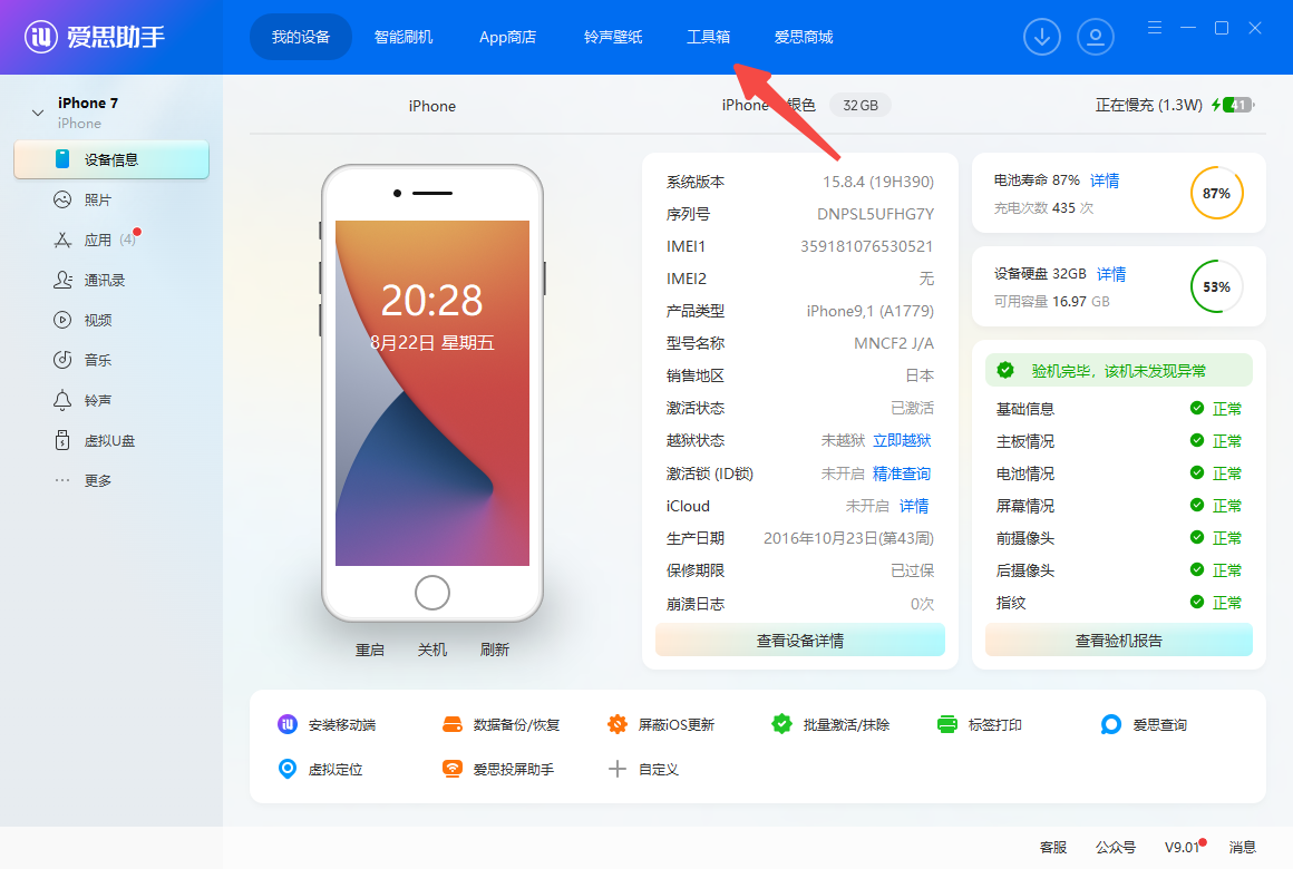 - 将苹果手机与爱思助手连接成功