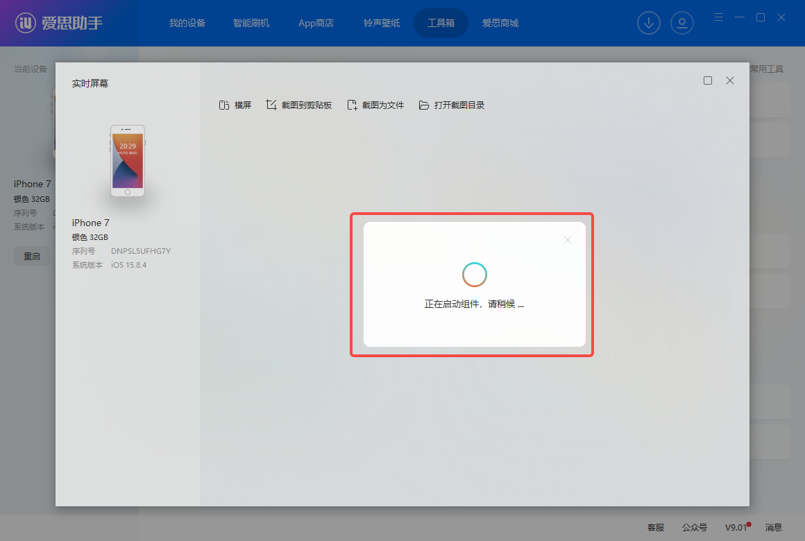 4. 打开爱思助手实时屏幕