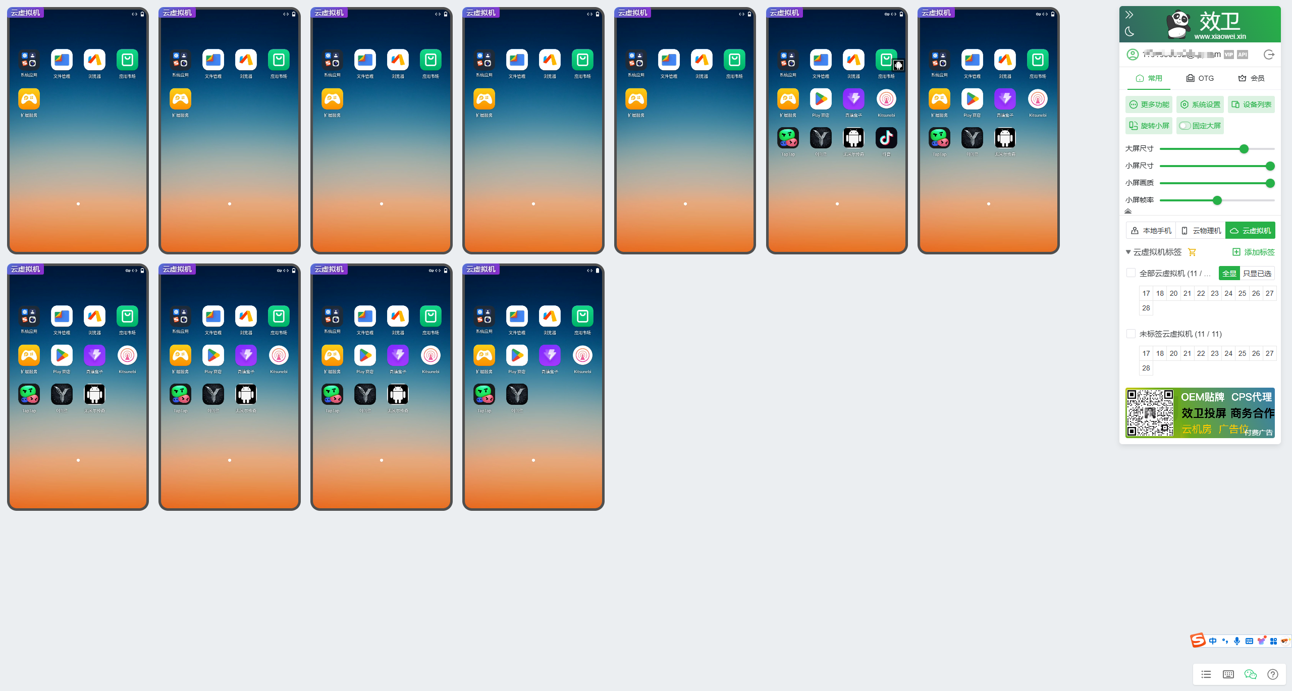 效卫安卓投屏 效卫投屏云手机如何使用? 2025年10月31日 1. 云手机如何使用? 云手机购买完成后,云手机会显示在云手机tab页面 2. 云手机操作习惯跟本地手机操作习惯基本保持一致,只是云手机少了小屏操控和鼠标滚轮滑动 3. 云手机的标签是存放云端的,所以标签分组可以跟随账号显示在不同的电脑上